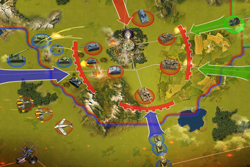 考虑地形、道路和补给等多种战争元素,远交近攻,合纵连横。另有30种策略可供使用。