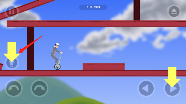 Happy Wheels游戏的屏幕中总共有五个操作按钮,左下角的三个按钮分别是跳跃、左倾和右倾,利用左边的按钮可以调节平衡,屏幕右下角则是前进和后退。按钮不多,操作也不难,但是游戏比较血腥,例如,角色会被不同的物件斩首、射杀或压碎,断肢和大量流血等等,胆小的朋友慎入。欢迎胆大的朋友来挑战。