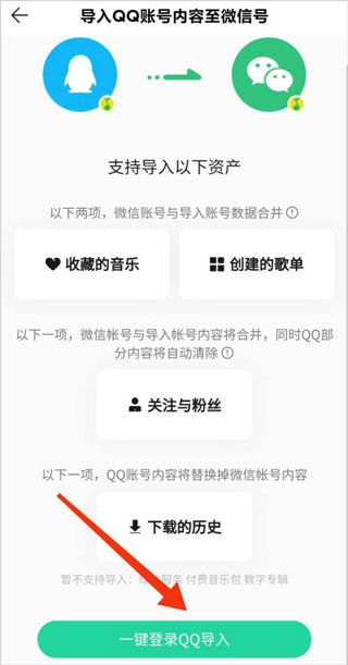 3、点击后,进入以下界面,点击底部的【一键登录QQ导入】即可。