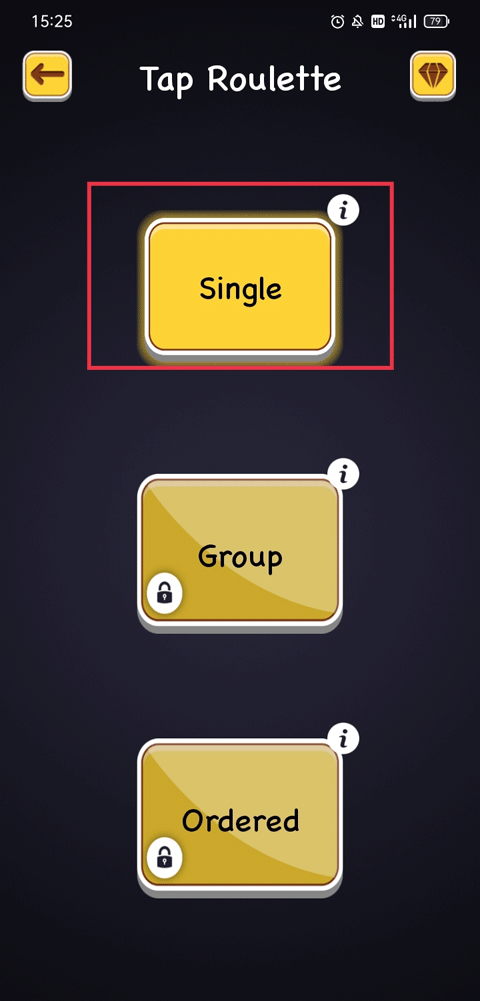 这款游戏主要的玩法是点击轮盘玩法,它主要包含简单、组队、指令等游戏等级,玩家需要解锁相应的等级之后才能玩耍。Tap Roulette除了点击轮盘之外,还包含抛硬币、扔骰子、比大小等,可玩性非常高,喜欢这类游戏的玩家可以下载体验一番!