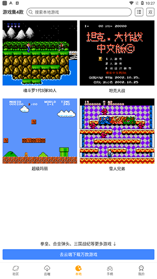 2、菜单栏中心是本地,软件默认为用户提供了实况本地街机游戏,其实大部分这里的游戏都不用下载,可以在线即玩,但是下载下来可以方便再次游玩,而且也不怎么占内存的
