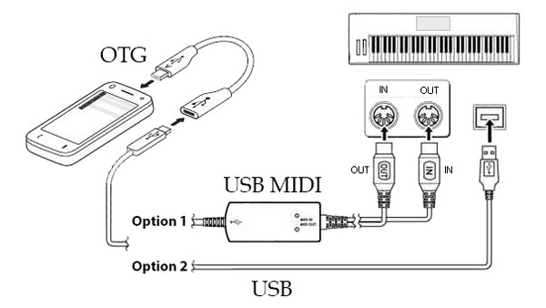 6、通过USB MIDI线连接到真正的音乐键盘。