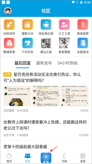 2、选择你要发帖的版块,以问政深圳为例,点击这个版块。