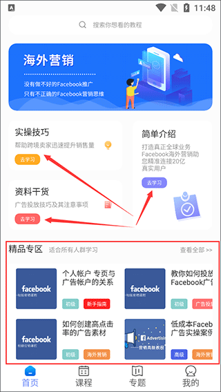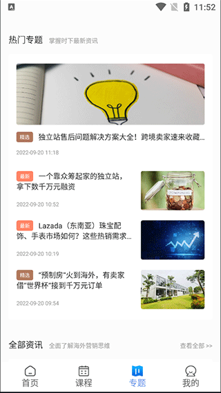 4、还有“专题”页,里面由最新发布的热门专题和丰富的资讯文章,让你能实时掌握最新资讯,学习了解海外的营销思维;