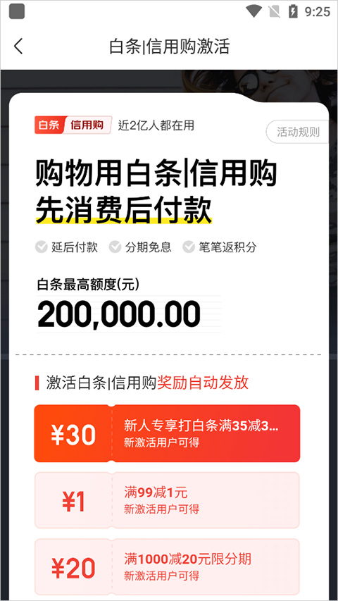 如果商品支持白条且消费金额满足条件会显示如下页面可以进行白条消费