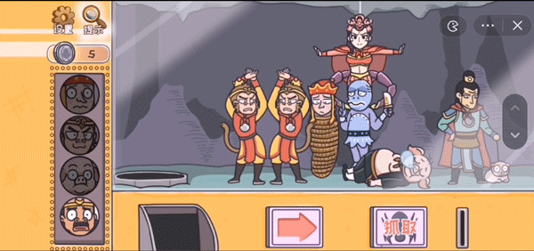 长按唐僧会念紧箍咒,孙悟空就会出现,抓住就可以通关了。