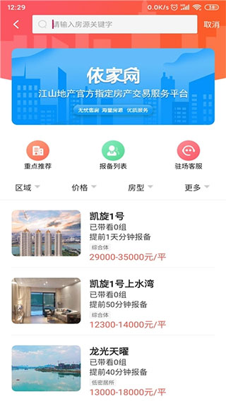 依家网app是由广西江山智慧科技信息有限公司推出的一款房产交易手机软件,拥有海量的房源信息,房源包含了新房、二手房、写字楼和出租房等,各种类型的房子都可以找到,用户再也不用担心怕找不到房子了,也不需要走街串巷了,在手机上就能轻松搞定。软件支持在线找房、办单查询、委托等丰富的功能,不仅可以在线和房东沟通,也查看房源的地理位置和配套设施,让你的房产交易更轻松,有需要的朋友欢迎下载体验!