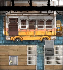再次启动机器,来到场景1,此时的入口铁栅栏已经被海水腐蚀殆尽,而花盆中的植物已经长的到处都是了,值得注意的是,植物上卷着的就是事件卡,搭一个梯子拿到事件卡,就可以前往下一关了。