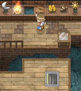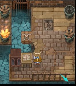 首先先装一杯海水,然后搭梯子来到画面右下方的下层入口处,对着入口的铁栅栏倒水。