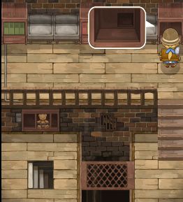 在房间4先找到木板,然后在房间4的最下方搭上一格梯子,可以向左移动到房间4的左下方,沿着路走到尽头,可以在抽屉中找到绳子,与先前找到的木板合成为木箱。