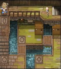 滑动公主来到地图左上角,拾取绳子与模板组合为木箱子,然后用两个木箱子搭成桥就可以来到对岸。