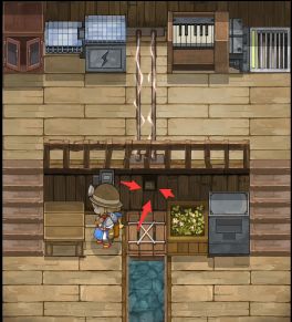 然后左拉右箱操纵杆,看到下方的轨道板向右移动,然后关闭开关,复位,再拉。重复操作,让轨道板形成一个通向下方的浮桥。