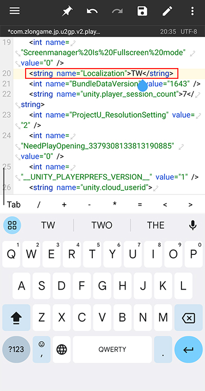 2、在过完新手教程之后关闭游戏,打开MT、RE等可直接访问根目录的文件管理器,接着打开根目录下的data/data/com.zlongame.jp.u2gp/shared_prefs/com.zlongame.jp.u2gp.v2.playerprefs.xml文件,
