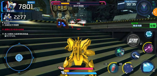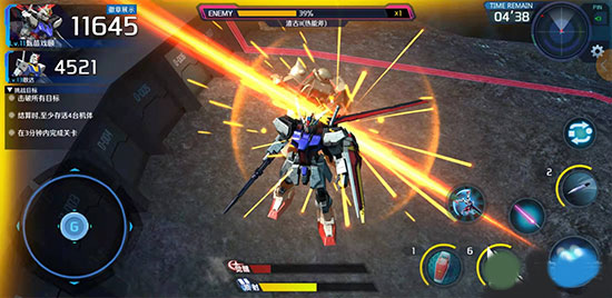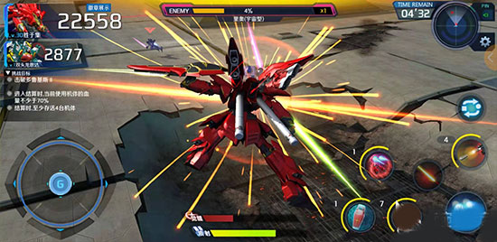 手游收录有十余部敢达系列的机体,忠实再现了宏大世界观中多样的武器设定。表现在游戏中,更是形成了丰富多彩的射击技能。不同的机体设置有不同的射击型武器,按压屏幕中的「普通射击键」便能发射主射击武器的攻击。建议事先了解并多多熟悉所拥有机体的射击性能,能够对完成未来的对战与任务有着莫大的帮助。