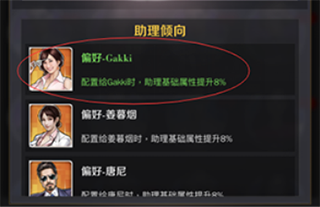 另外橙色以上助理会有倾向加成,当配置给指定倾向人才时会触发额外加成。