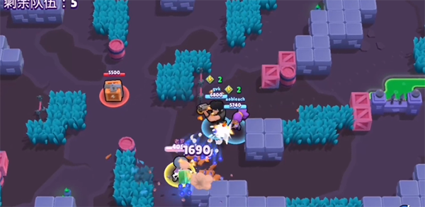 也可以站住位置,当对面有人靠近探视野的时候,用普通攻击攒一点能量,等到能量满的时候就可以在其他玩家血拼中杀出一条属于自己的收割之路。公牛的大招蛮牛冲撞距离十分远,因此玩家在准备偷袭动作时也一定要预判好距离和时机,别等到自己一个大招冲出去发现对面不打了,然后又被几个玩家一起包夹,真的就是白给,硬送的操作。