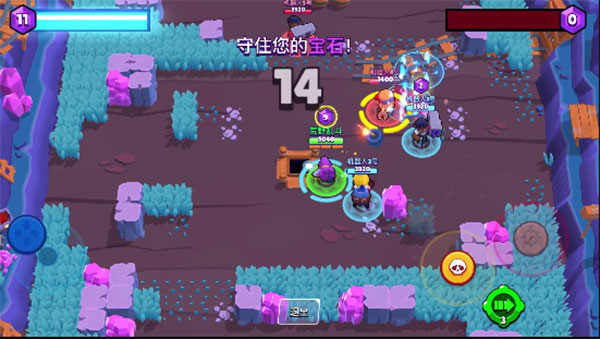 3V3战斗,收集地图中心的宝石矿井里冒出的宝石,或是干掉对手并抢走他们的宝石,集齐10颗宝石并坚持到计时结束后即可赢得对战。