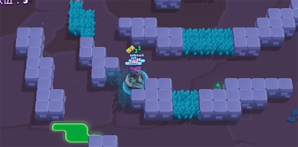 因此公牛在一开始并不要想着暴露视野,和其他玩家对拼换血,没有意义,也很容易被集火针对。此时需要做的就是每进一个草丛,就在里面呆一会,观察一下场上的局势,不是单单看地图上有没有人打架那么简单,而是要观察攻击距离超长的英雄分布在哪里,避免下一步走的时候遇到难搞定的英雄。