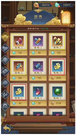 红色框中的材料是需要天命官每天都购买的,经验丹和进阶丹都是以后提升英雄必不可少的材料,随机三星英雄碎片也为日后的狗粮做了储备。