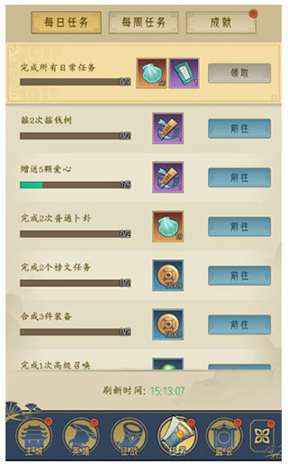 其次,每日任务和每周任务也是资源的重要获取方式之一。因为水月秘境和天门关战斗并不是每天都开放,所以每次开放的时候一定要去刷,这样完成每周任务就容易得多了。