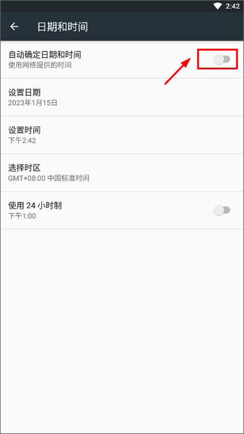 1、首先打开消灭病毒、然后进入手机设置界面,关掉日期与时间中的“自动设置”,往前调一个月;