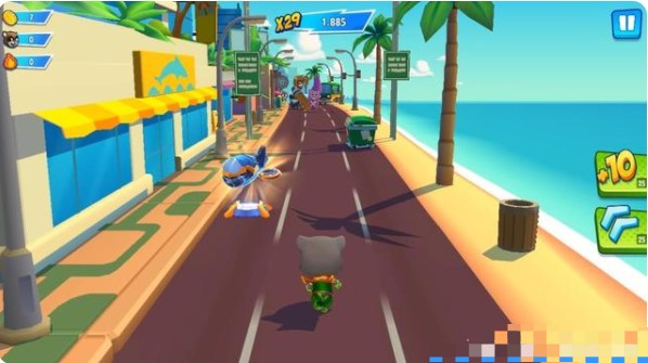 汤姆猫英雄跑酷是一款很有趣的跑酷手游,画面清新Q萌,操作简单。玩家可以操控汤姆猫和安吉拉在不同的地图场景里跑酷,比如城市、沙滩、古城等,避开障碍物,打败浣熊,赚取金币和钻石来重建家园。游戏还有丰富的角色皮肤和限时活动,解锁新地图需要修复城市建筑,消耗金币和钻石。