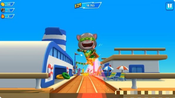 1、精美3D卡通风格的游戏画风,感受汤姆猫跑酷的乐趣吧;