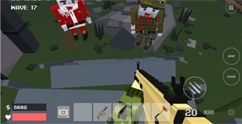 游戏特色明显,借鉴了《使命召唤》的无限僵尸模式,以像素风格呈现,玩家在一个封闭房间内抵御僵尸入侵。武器种类丰富,包括手枪、冲锋枪、霰弹枪等,各有特点。僵尸分为五个等级,每个都有独特的攻击方式和特点,比如普通僵尸血少攻击低,而防化服僵尸会慢慢掉血。
