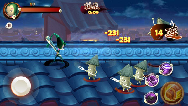 我们在游戏中使用摇杆来控制走位,本作虽然是横版画面,但是却做出了一定的3D立体效果,在走位的时候,除了可以进行左右移动外,也有上下一定的空间,有些类似DNF的走位感觉。