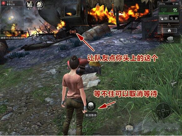 4、如果你有队友在边上,请务必选择寻求帮助进行脱离。选择寻求帮助后 你的头上就会出现一个加号一样的标志,这时队友点击你头上那个加号标注就可以帮你脱离卡住