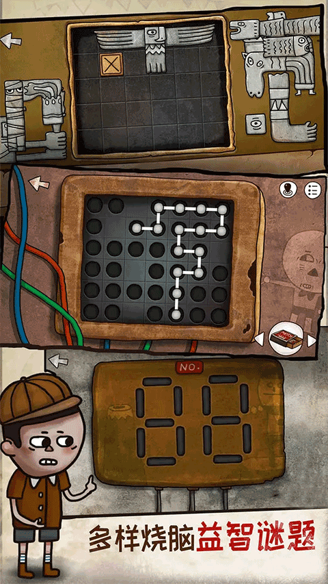 虽然好奇,但是生性谨慎的你决定晚一点在出门,不妨先上楼看看老人家究竟在阁楼上鼓捣什么。点击电线连着的机关,在这里遇到游戏的第一个机关门。