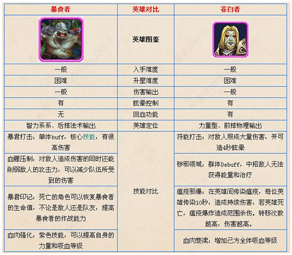 由我叫MT2中暴食者和苍白者的英雄定位对比可以看出暴食者和苍白者明显区别是暴食者是暴力型英雄而我叫MT2中的苍白者则是辅助型英雄。