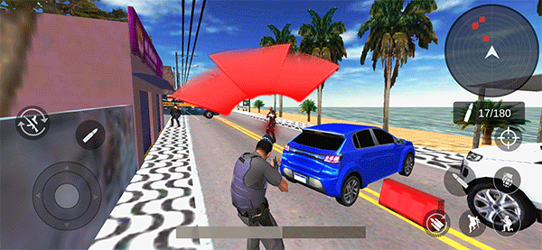 1、逼真的开放世界:游戏拥有广阔而详细的地图,灵感来自真实的巴西场景,有繁忙的街道、小巷和各种兴趣点,例如:警察局、加油站、住宅区和商业区。