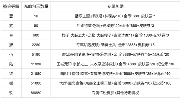 阴阳师大人 将依据累计充值勾玉数量获得不同的鎏金等级。