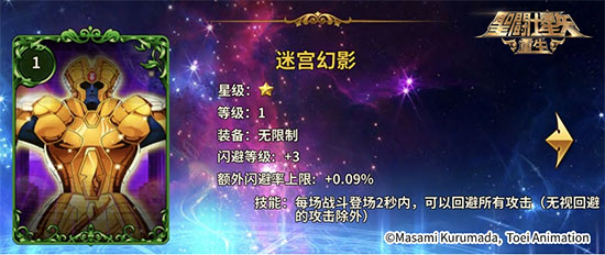 迷宫幻影:增加闪避和闪避上限,技能开场闪避。是最实用的绿卡之一,极易养成。