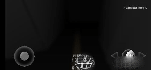 游戏通过触摸物体显示轮廓、点击盲杖寻找盲道、听觉判断方向,求助等交互操作,来模拟视障人士的触觉,听觉等体验,尝试还原视障人士获取环境信息的方式。