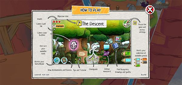 5、游戏中会给你一个页面和相关的绘画工具,你可以利用创造出属于自己的作品,开始跟随新手教程,进行冒险闯关。