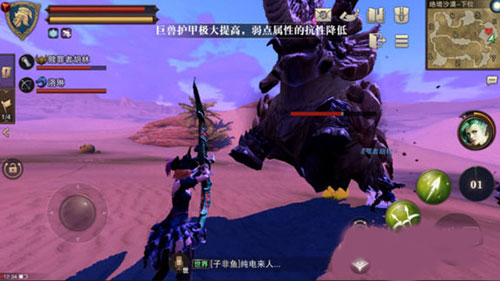 要说起战斗前的准备工作,观察是最主要的,就像是打仗的时候,需要侦查一般,了解巨兽的特性、技能还有攻击方式,这些都能辅助你取胜。就拿荒漠猛犸来举例子,荒漠猛犸的技能在接触过一次之后,就晓得了,最有效的技能在于那个防御类的技能,减免伤害,强化部位,能够让你每次攻击的时候造成一点伤害。这个技能有些恶心,但是等它持续时间过去就好了,这点不难。