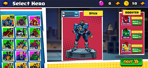 2、选择挑战的关卡后,开始选择你的机器人英雄;