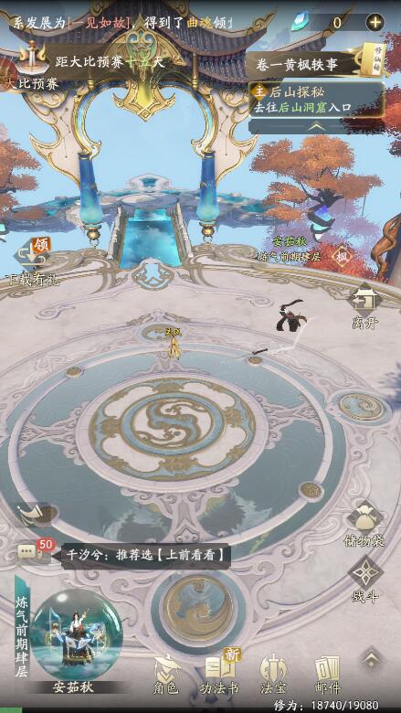 2、点击确定就会开始修仙之旅了,我们先前往掌天瓶