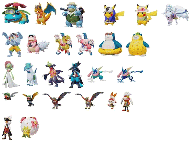 皮肤:在《宝可梦大集结》中同一种宝可梦有不同的风格造型。如下图所示。