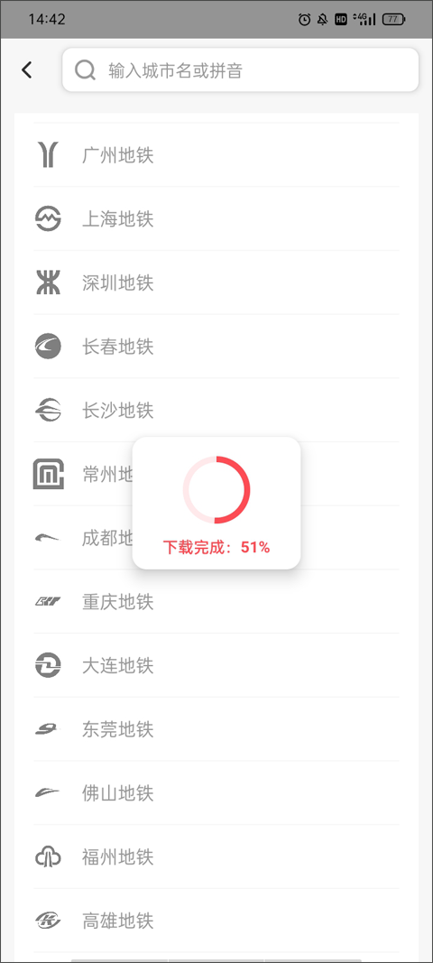 3、下载好后,页面就会自动刷新出另外一座城市的地铁分布情况了。