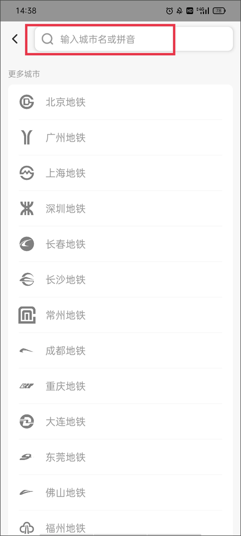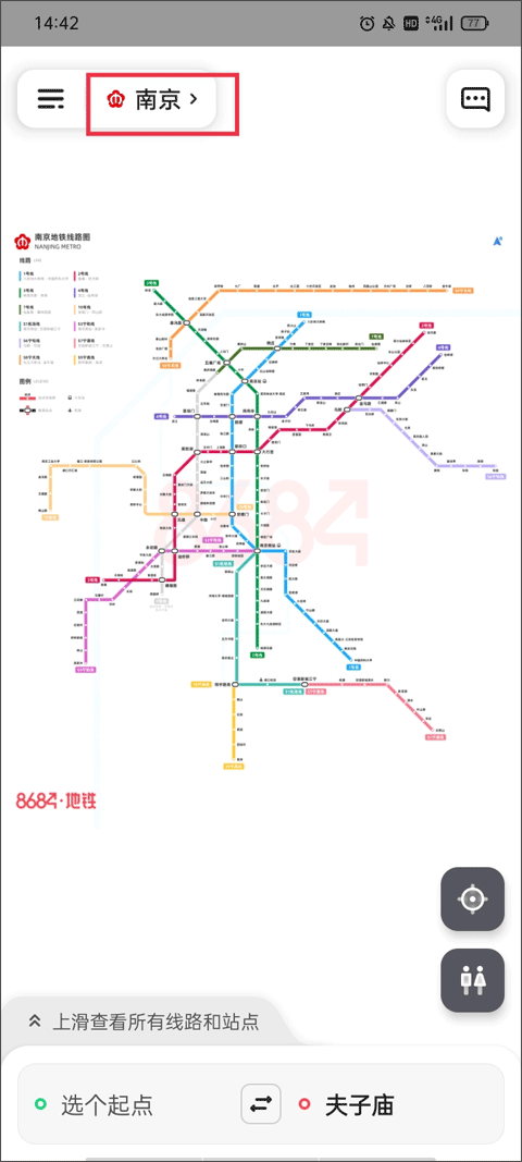 1、如果想查看其他城市的地铁,可以点击左上方显示城市名称的按钮;