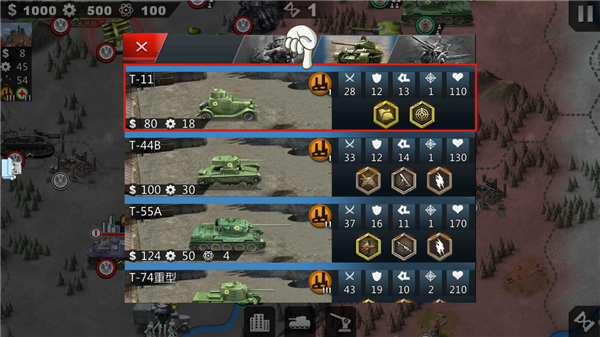 7、不同的建筑可以生产不同的部队,生产部队会消耗资源,我们点击下方坦克图标;