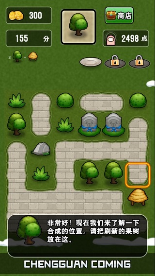 城管来了游戏是一款融入消除玩法的益智模拟类手游,玩家作为小镇的建设者,起初难免会因为建筑布局的不规整而招致城管的严厉管控,而你要做的就在城管到来之前,利用三消机制快速完成对小镇的建设。同时游戏界面整体风格比较清新,草绿色的背景,令人向往,同游戏界面清秀风格一样,玩法模式比较单一,但这并不是缺点,正如你所看到的那样,玩家要在指定的范围内通过类似《俄罗斯方块》一样的操作来建造小镇绿化。此外,城管来了游戏规则非常简单,三个或者以上同样的连在一起会升级成高级物品,位置点击的地方就是高级物品合成的地方,通过对消除位置的了解,判断你要放置的位置,因为留给你的空地有限,确保在城管到来之前,获取更高的分数!不仅如此,游戏内还提供了丰富的道具系统,点数的增加、万能胶囊的使用以及爆破弹、小草、灌木、大树、撤销等等,这些道具对于玩家的目标清除有着非常大的帮助,记得别忘记使用哦~