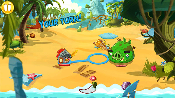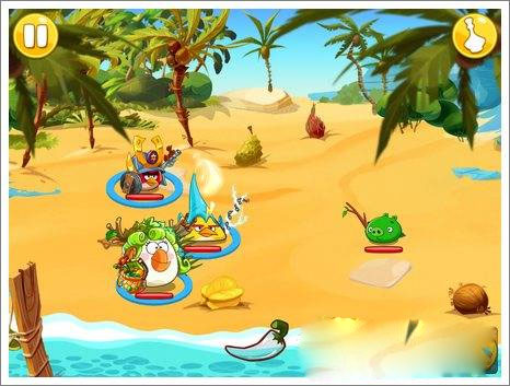 在游戏中玩家将操控自己的角色与敌人进行对抗,本作的战斗采用了回合制战斗模式,玩家可以直接用手指以划线的方式指定攻击目标,每个小鸟、捣蛋猪都具有不同的属性,长按小鸟或捣蛋猪即可查询它们的特性。