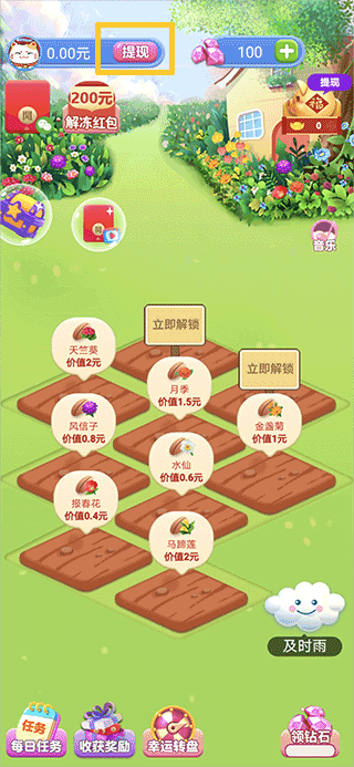 总是觉得碎片化时间太多?平时上班没时间?多多养花红包版是一款非常好玩又挣钱的app,事实上也叫做多多养花赚钱极速版,在这块土地上,用户可以点击种地来获得收益,游戏轻松有趣,实在是一款打发时间的利器。同时为了让用户能够在轻松的环境下游玩游戏,软件还为新人准备了丰厚的大礼包,在配合整体画风可爱的同时,游戏在细节上的处理上也是非常用心的,游戏的提现功能最低可以精确到小数点,这么好玩有赚钱的app,大家喜欢就快来下载使用吧!