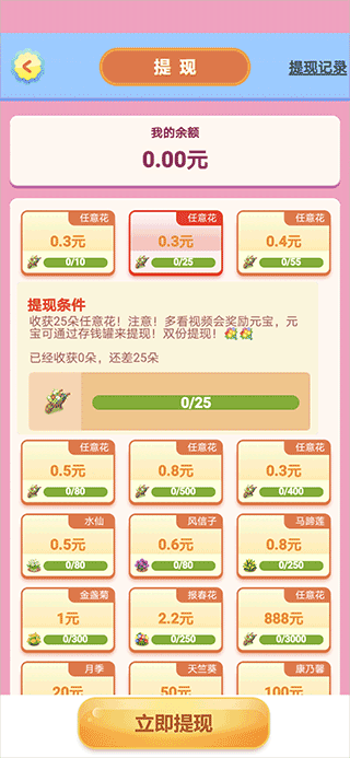 最近发现了一款挺有意思的App叫多多养花红包版,感觉它既有趣又能赚钱,简直是打发碎片时间的好帮手!游戏里种花、浇水、施肥这些操作都很简单,玩起来轻松又不费力。最让我惊喜的是还能通过完成任务赚取红包,提现也很方便,而且金额可以精确到小数点。软件的画风很可爱,细节处理得很用心,特别是给新手准备的大礼包真的很贴心。