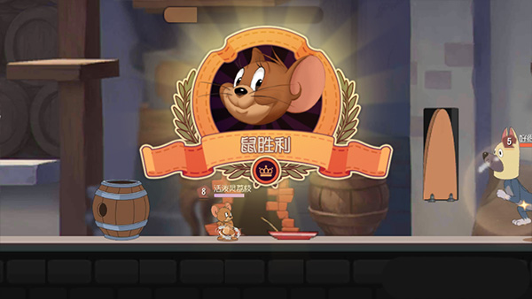 玩家需要收集到5个奶酪,收集完毕会在地图任意地方出现一个墙洞,玩家需要借助地上的雪球、果盘、盘子将它打破。打破之后,队友或者自己进去就获得胜利了。