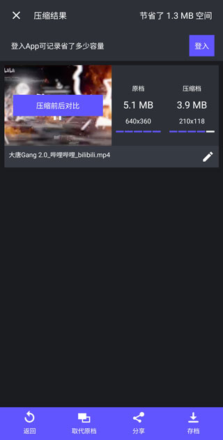 你想分享你的视频,但你的数据是有限的,而且你无法负担更好的数据包?当你在国外时,这一点尤其相关。你不能使用Wi-Fi,但你仍然想分享视频?这不是问题。只要用熊猫视频压缩器减少你的视频大小。就是这么简单。熊猫视频压缩器安卓版是一款方便实用,功能齐全的手机视频压缩神器应用。软件功能齐全,容易使用,压缩后画质不会大打折,操作简单,仅需三部即可出成品,支持传输以及存储,压缩你的视频容量节省手机空间,让你可以拍更多的视频以及照片。熊猫视频压缩器支持丰富,格式包括:mp4、avi、mkv、flv、rmvb、3gp等,支持一键分享到社交平台,绝对是一款超强大的视频压缩神器。